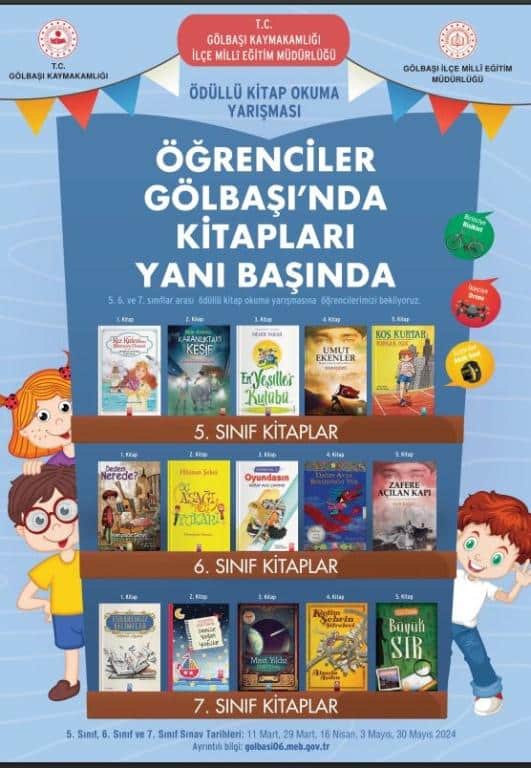İlçemizde ‘’ Öğrenciler Gölbaşı’nda Kitapları Yanı Başında ‘’ projesi kapsamında düzenlenecek olan kitap okuma yarışmasına tüm öğrencilerimizin katılımını bekliyoruz.